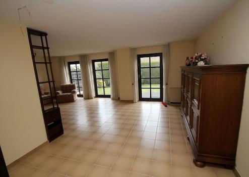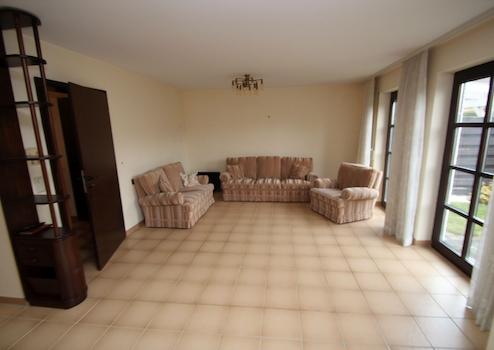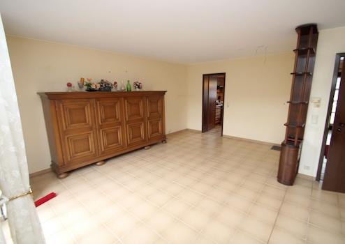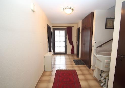 Im Erdgeschoss empfängt ein zentraler Eingangsbereich mit Zugang zu allen wesentlichen Räumen dieser Ebene. Hier befinden sich die Küche sowie der großzügige Wohn- und Essbereich, der durch seine offene Gestaltung vielseitige Einrichtungsmöglichkeiten bietet und den Mittelpunkt des täglichen Lebens bildet. Von hier aus besteht ein direkter Zugang zur Terrasse. Zusätzlich steht im Erdgeschoss ein Gäste-WC mit Dusche zur Verfügung – praktisch für Besucher und den Alltag. Die Ausstattung ist funktional und gepflegt, mit massiver Bauweise und klassischen Innenausbauelementen.