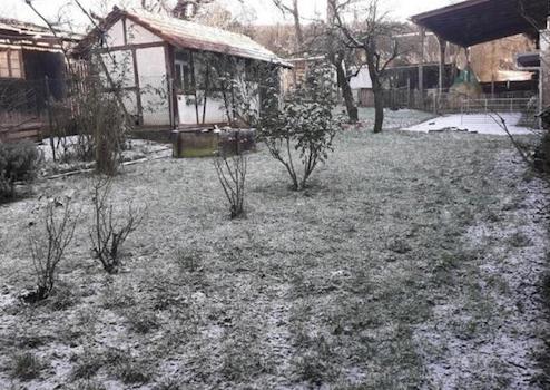 Der hintere Teil des Hofes besteht zur Zeit aus 1/3 Pferdeauslauf und zu 2/3 aus Garten mit Hühnerhäuschen.