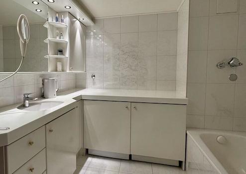 * Badezimmer mit Wanne, Dusche und Anschluss