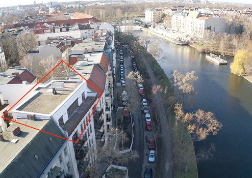 Ein absolutes Highlight der Wohnung ist der direkte, unverbaubare Blick auf die Spree, der sich sowohl vom Balkon als auch durch vier bodentiefe Fenster mit stilvoller Glasbrüstung eindrucksvoll eröffnet und dem Wohnbereich eine außergewöhnliche Atmosphäre verleiht.