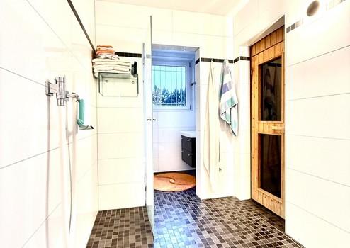 Im UG befindet sich der exklusive, private Rückzugsort zum Abschalten, Wohlfühlen und Regenerieren - perfekt nach einem anspruchsvollen Arbeitstag, einem Spaziergang im Wald oder aktiven Tag auf dem Golfplatz.