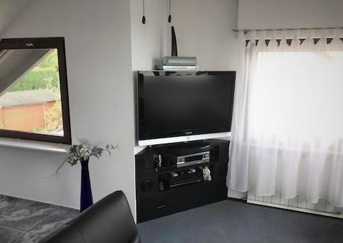 Die Einrichtung selbst ist hochwertig (u.a. Rolf Benz) geschmackvoll und raumoptimiert eingerichtet. Wohn- Essbereich mit Ledercouch (2 Stück) Ledersessel, Esstisch mit vier Stühlen, Glasvitrine und Durchreiche zur Küche. Großer 42“ Fernseher (SAT-Anschluss) und Hi-Fi-Anlage.