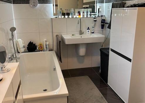 Besonders komfortabel ist die Ausstattung mit zwei Badezimmern. Das Hauptbad ist mit Badewanne, separater Dusche, WC und Waschbecken ausgestattet und überzeugt durch eine moderne, geschmackvolle Gestaltung. Ein zusätzliches Gäste-WC ergänzt den Wohnkomfort .Ein zentral betriebenes Heizsystem sowie moderne Isolierglasfenster gewährleisten ein angenehmes Raumklima und tragen zu einem effizienten Energieverbrauch bei. Abgerundet wird das Angebot durch einen zur Wohnung gehörenden Außenstellplatz, der bequemes Parken direkt am Haus ermöglicht.