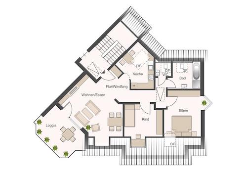 Herzstück der Wohnung ist der großzügige Wohn- und Essbereich, der viel Platz für eine gemütliche Sofalandschaft sowie einen Essbereich bietet. Große Fensterflächen sorgen für eine freundliche, lichtdurchflutete Atmosphäre und schaffen ein angenehmes Wohngefühl. Von hier aus gelangen Sie direkt auf den großzügigen Balkon mit Süd-Westausrichtung, dieser lädt zum Entspannen im Freien ein und bietet Ihnen zusätzlichen Wohnkomfort. Die separate Küche ist neben dem geräumigen Schlafzimmer ebenfalls vom Flur erreichbar und lässt sich dank seiner Größe individuell gestalten. Ergänzt wird das Wohnkonzept mit einem praktisch geschnittenen Kinderzimmer sowie einem Gäste-WC. Das Badezimmer ist mit einer Badewanne und einer Dusche ausgestattet. Der Waschmaschinenanschluss befindet sich im Waschkeller.