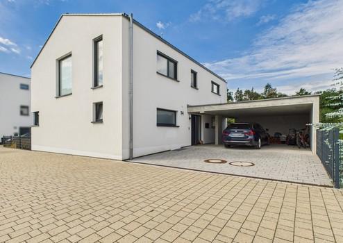 Massiv gemauertes Einfamilienhaus mit WU-Keller im KfW-55 Standard mit gehobener Ausstattung auf großem Grundstück (811qm) in unverbaubarer Waldrandlage. Komplett angelegter Garten, Sichtbetoncarport für 2 Autos mit Wallbox. Energieeffizienzklasse A mit Photovoltaik+Speicher, Solarthermie, Fußbodenheizung (auch im Keller), Regenwasserzisterne und Kaminofen.