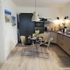 Die separate Einliegerwohnung (ca. 36,5 m²) verfügt über eine eigene Eingangssituation, Einbauküche sowie ein modernes Bad mit ebenerdiger Dusche.