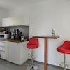 ### Please note the availability date! Bitte das Verfügbarkeitsdatum beachten! ### möbliertes Apartment in DD-Mickten; Wohnraum mit Bett, Kleiderschrank, Sessel, TV und Schreibtisch; Küchennische mit Esstisch; Bad mit ...