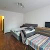 ### Please note the availability date! Bitte das Verfügbarkeitsdatum beachten! ### möbliertes Apartment in DD-Mickten; Wohnraum mit Bett, Kleiderschrank, Sessel, TV und Schreibtisch; Küchennische mit Esstisch; Bad mit ...