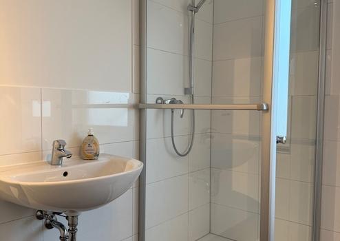 Im ersten Obergeschoss befindet sich das helle Badezimmer, welches mit einer Badewanne und einer Dusche ausgestattet ist.