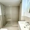 Das luxuriöse Badezimmer überzeugt mit einer begehbaren Dusche, hochwertigen Armaturen und fein abgestimmten Fliesen.