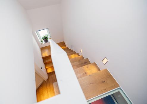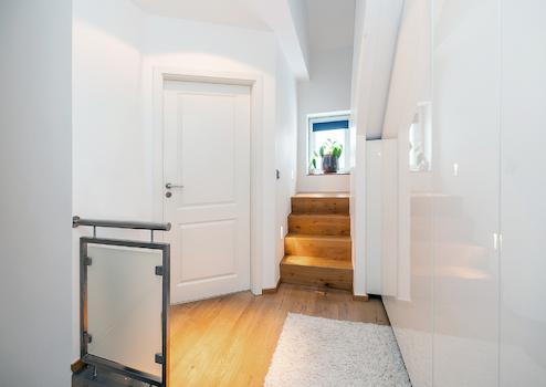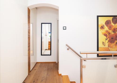 Ein echtes Highlight befindet sich im Dachgeschoss: Ein besonderer architektonischer Akzent ist der teilweise verglaste und begehbare Bodenbereich, der aus der ehemaligen Dachbodentreppe hervorgegangen ist und dem Raum eine moderne, offene Note verleiht.