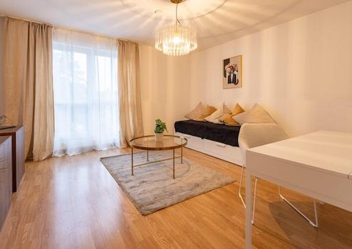 Der Wohn- und Schlafbereich ist hochwertig möbliert und optimal auf die Raumgröße abgestimmt. Die neue Einbauküche ist modern ausgestattet, verfügt über neue Elektrogeräte und ist dank separater Tür klar vom Wohnbereich abgetrennt.