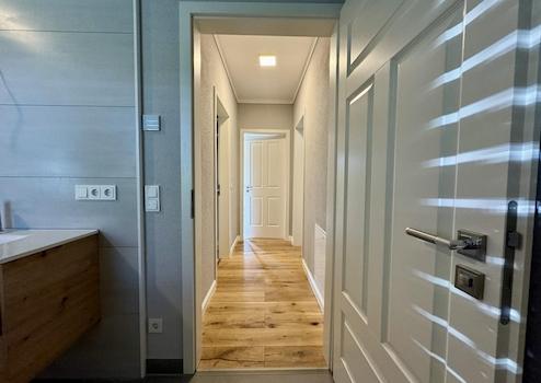 - Edles Eichenparkett und großformatige Fliesen