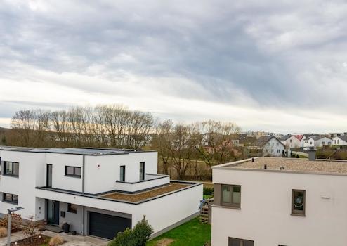 Top Lage - Trier, Tarforster Höhe Baugebiet BU 14 In attraktiver Lage mit toller Infrastruktur entstehen neue Stadthäuser im Passivhausstandard KFW 40. Die Kombination von moderner Technik und hochwertiger Isolierung führt zu sehr günstigen Heizkosten bzw. Nebenkosten. Im Angebot ist eine Luftwasserwärmepumpe einschließlich einer zentralem Warmwasserversorgung für Bäder und Küchen. Zusätzlich erhalten die Häuser eine Photovoltaikanlage mit ca. 3,1 KWp auf dem Flachdach zur Unterstützung der Heizung, Warmwasser sowie dem täglichen Strombedarf. Somit entsteht ein ein modernes energetisch hochwertiges Haus. Alle ökologischen Energiequellen können genutzt werden, um möglichst energetisch autark zu werden. Als Sonderwunsch kann die PV Anlage auf 5,1 KWp aufgerüstet werden und ein Batteriespeicher mit min ca. 5,1 KWh Speicher erworben werden. Alle Häuser sind voll unterkellert und verfügen über schöne Terrassen und Dachterrassen. Von den Dachterassen haben Sie eine schöne Aussicht.