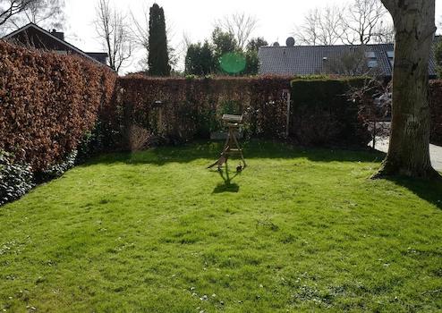 mit Garten vorne und hinten und Südterrasse vor dem Wohnzimmer.