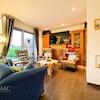 Das Erdgeschoss sowie die offene Küche sind mit eleganten, anthrazitfarbenen Hochglanzfliesen ausgestattet, die dem Wohnbereich eine moderne und stilvolle Atmosphäre verleihen. Die Küche wurde 2024 umfassend modernisiert und verfügt über hochwertige Elektrogeräte, darunter ein neuer Kühlschrank sowie ein Weinkühler. Der Essbereich wurde 2023 neu gestaltet und fügt sich harmonisch in das offene Wohnkonzept ein.