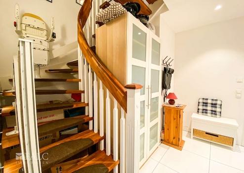 Ein 2020 installierter Treppenlift gewährleistet Barrierefreiheit im gesamten Haus. Dreifach verglaste PVC-Fenster sorgen für hervorragende Wärmedämmung und Energieeffizienz.