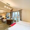 Im Erdgeschoss befinden sich ein Hauswirtschaftsraum, ein modernes Gäste-WC und ein lichtdurchflutetes Wohnzimmer mit offener Küche im stilvollen Schwarz-Weiß Design. Das erste Obergeschoss bietet ein Hauptschlafzimmer mit Hafenblick, ein elegantes Vollbad und ein zusätzliches Schlafzimmer. Das ca. 46 m² große Studio im zweiten Obergeschoss, ausgestattet mit bodentiefen Fenstern, einer kleinen Bar und einem modernen Duschbad, stellt das Herzstück des Hauses dar.