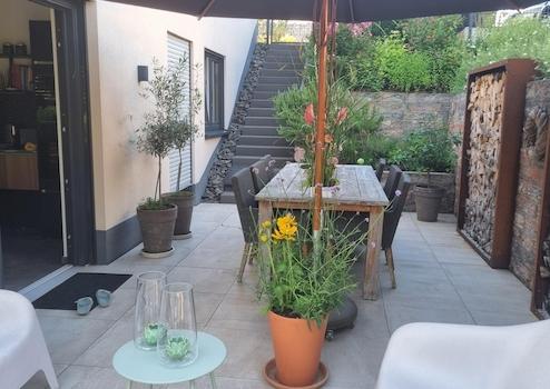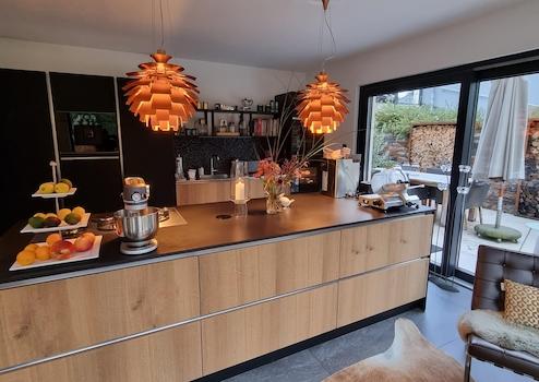 Vom großzügigen Wohnbereich und der hochwertig eingerichteten Küche haben Sie direkten Zugang zu 2 separaten Terrassen. Einer Haupt- und einer Frühstücksterrasse, die sich auch wunderbar für gesellige Grillabende eignet.