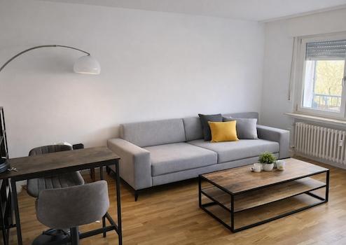 Auch der Frankfurter Flughafen ist in etwa 15 Minuten mit dem Auto erreichbar, wodurch sich die Wohnung besonders gut für Pendler, Vielflieger oder Beschäftigte am Flughafen sowie im Industriepark Höchst eignet.