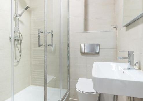 • Kleines und komplett saniertes Badezimmer inkl. Handtuchheizkörper und Regendusche