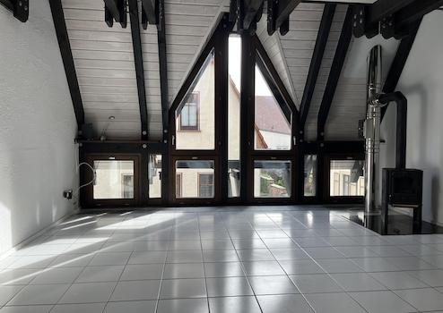 Die ca. 120 m² Wohnfläche verteilen sich auf versetzte Ebenen mit insgesamt vier Zimmern sowie einer offenen Empore. Direkt am Haus befindet sich ein KFZ-Stellplatz – in dieser zentralen Altstadtlage eine absolute Seltenheit.