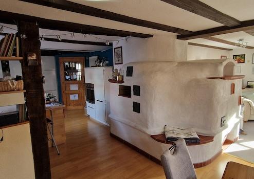 In der Wohnung im Erdgeschoss befindet sich ein (Holz-) Grundofen der im Winter für angenehme Wärme sorgt. Zum Haus gehört ein Carport und ein Stellplatz sowie praktische Außenstellflächen, dazu ein Holzlagerraum, eine Fahrradgarage (abschließbar) und zwei Gartenschuppen. Insgesamt ein gepflegter Zustand ohne Instandhaltungsrückstau