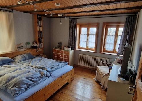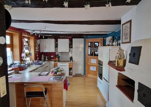 Die Immobilie bietet ein angenehmes Wohnambiente mit historischem Charme und funktionaler Raumaufteilung. Im Erdgeschoss befindet sich ein offener Wohn- und Essbereich mit Einbauküche und Zugang zur sonnigen Terrasse und kleinem Garten. Tageslichtbad, Abstellraum (Vorratskammer) und Waschküche (gemeinschaftlich genutzt). Zugehörig im Obergeschoss, das mit einem lichtdurchfluteten Treppenhaus erreichbar ist, sind fünf vielseitig nutzbare Zimmer (Schlafen, Kinder, Büro etc.). Dazu ein weiteres Badezimmer mit Dusche und WC und eine kleine Abstellkammer. 1 Zimmer hat alle Anschlüsse und kann auch als weitere Küche genutzt werden.