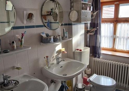 In der separate Dachgeschoss-Wohnung die über einen eigenen Eingang und Treppenhaus erreichbar ist befindet sich eine helle 3-Zimmer-Wohnung mit Küche und Bad. Dazu ein Spitzboden der als Abstellfläche ausgebaut ist. Die noch vermietete Dachgeschosswohnung kann im Termin besichtigt werden, sie wird in Kürze frei. Die Wohnung befindet sich ebenfalls in einem guten und gepflegten Zustand.