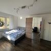 Im 1. Obergeschoß liegt ein Schlafzimmer mit Zugang zu einem Bad ensuite mit Dusche/Badewanne. Auf der anderen Seite befinden sich 2 (Schlaf-) Zimmer mit Zugang zu einem gemeinsamen Duschbad. Ein Ankleidezimmer und ein ausgebautes Dachstudio mit kleinem Bad (Waschbecken/WC) komplettieren den oberen Bereich.