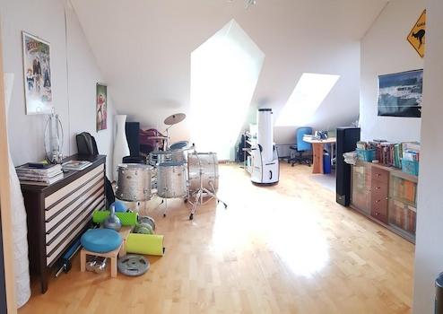 o Dachgeschoss mit hellem, großen Studio mit 3 Fenstern, Anschlüsse für eine Dusche +
