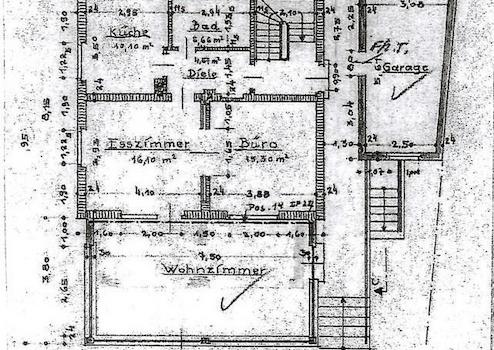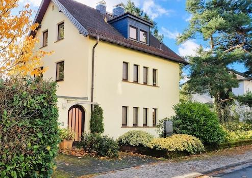 Unsere freistehende Immobilie befindet sich in einer ruhigen Anliegerstraße am nördlichen Rand von Kronberg. Das 1952 massiv errichtete Wohnhaus mit zwei abgeschlossenen Wohneinheiten und ausgebautem Dachgeschoss wurde 1961 erweitert.