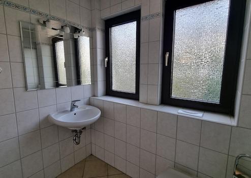 Für Hobby und Freizeit ist das voll unterkellerte Haus ideal. Vom Keller aus gelangt man direkt in den großen Garten, in dem sich eine Gartenhütte im skandinavischen Landhausstil befindet.