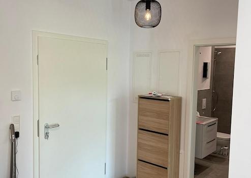 *voll möbliert (moderne, neue, zeitgemäße Möbel -> Zimmer: BOXSPRINGBETT, Schrank, Nachttisch, Schreibtisch, Bürostuhl, Lampen, auf Wunsch mit Bettwäsche und Handtücher -> Wohnküche: Esstisch, Stühle, Lampen, Regale)