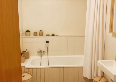 - Badezimmer mit Dusche und Badewanne