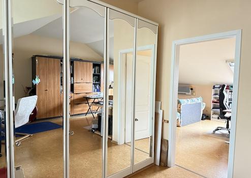 Dachgeschoss: Schlafzimmer und großes Büro. Ein Teil des Büros könnte zu einem weiteren Zimmer z.B. Kinderzimmer abgeteilt werden.