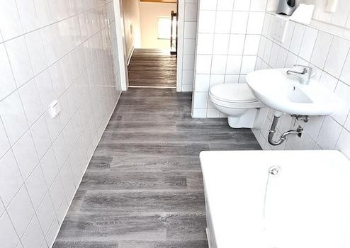 Büro-/Gewerbeeinheit mit zwei separat nutzbaren Räumen, Teeküche, separatem Gäste-WC sowie zusätzlichem Sanitärbereich im Flügel. Die Einheit ist über den Hausflur erschlossen und optional auch zu Wohnzwecken neu strukturierbar.