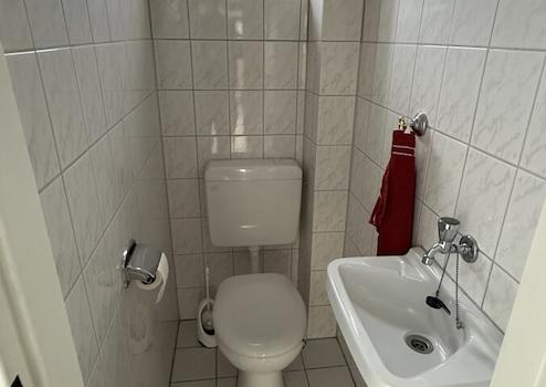 Das Tageslichtbad mit Dusche wird durch ein separates Gäste-WC ergänzt, was den Wohnwert deutlich erhöht.