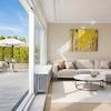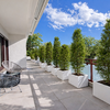 • Dachterrasse mit elektrischer Markise, Glasbrüstung und hellem Fliesenbelag