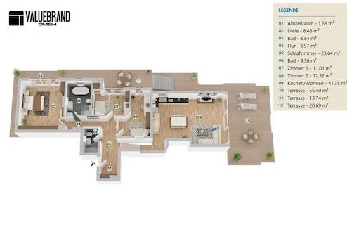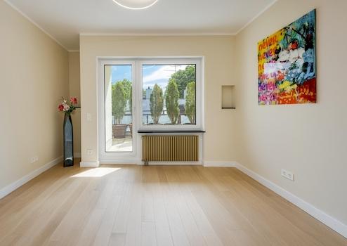 Hier wurde das Dachgeschoss umstrukturiert und durch eine aufwendige Kernsanierung ein veredeltes Neubauniveau erreicht und befindet sich gerade in der Fertigstellungsphase. Dabei wurde diesem Dachterrassentraum zeitgenössischer, moderner Wohnkomfort auf höchstem Niveau eingehaucht.