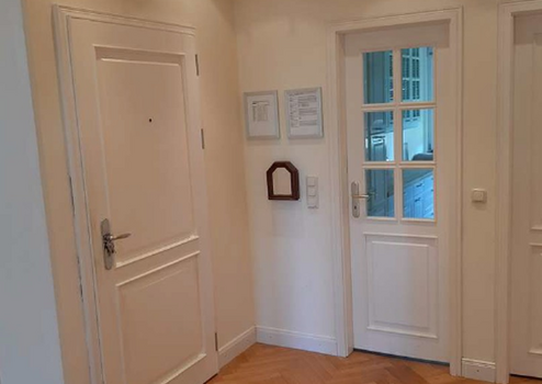 - Die Ausführung der Türen erfolgte in Rahmen-Füllung Konstruktion aus Holz im Stil