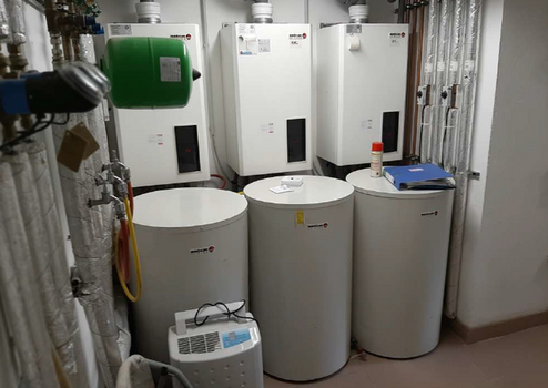 Jede Eigentumswohnung hat ihre eigene Gas-Brennwertheizungsanlage mit einer dazugehörigen Warmwasser Aufbereitung.