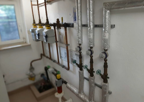 - neue Grundleitungen des Gebäudes mit Kanalanschluss.
