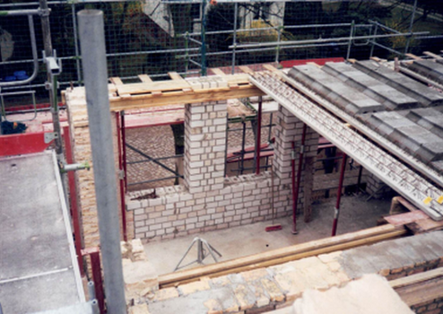 - Ersetzen aller Holzbalkendecken durch neue Stahlstein-Betondecken.