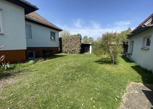 Neben dem Haupthaus besteht ein weiteres Nebengelass – ebenfalls massiv gebaut - mit einer Garage und einem Stall. Der Dachboden ist vom Stall aus über eine Leiter zu erreichen und kann entsprechend für weiteren Stauraum genutzt/ausgebaut werden. Im hinteren Bereich schließt sich ein überdachtes Außenlager an. Der Garten ist größtenteils – abgesehen von Rasen, einigen Obstbäumen und Blumen in den Randbereichen – unbepflanzt und bietet viele Möglichkeiten für gartenlandschaftliche Gestaltung.