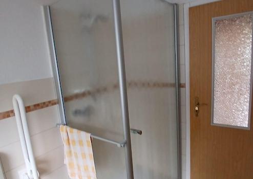Das Obergeschoss verfügt über einen Eingangsbereich (Veranda) und erschließt über den Flurgang drei Räume sowie die Küche und das Badezimmer. Das Duschbad wurde 2019 neu gefliest und weist eine barrierefreie Dusche sowie WC und Handwaschbecken auf. Die Küche umfasst eine Einbauküche mit Backofen, Herd und Geschirrspüler, welche noch nicht beräumt wurde. Vom Wohnzimmer aus erreicht man die ca. 35 m² große Terrasse von wo aus man einen tollen Blick über den Garten hat. Das Untergeschoss ist so konzipiert, dass es über einen separaten Außeneingang erreichbar und damit als Einliegerwohnung nutzbar ist. Erschlossen ist das Untergeschoss ebenso über eine innenliegende Treppe. Das Untergeschoss erschließt über einen Flur 3 Räume sowie ein WC, eine Waschküche, Speise-/Vorratskammer, den Heizungsraum und eine Garage.