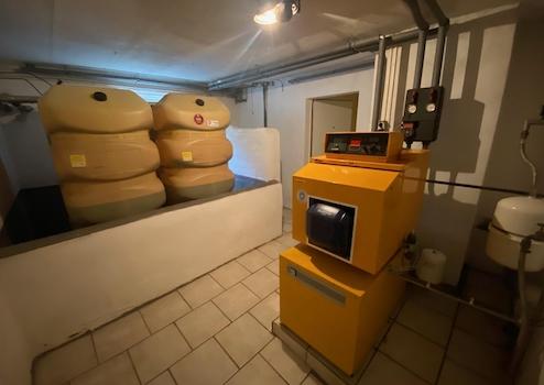 Die Heizungsanlage (Kessel nebst Öltank) wurde 1994 installiert. Der Tank fasst 3.000 Liter Heizöl. Ein weiterer Geräteraum im Untergeschoss ist nur über eine Außentreppe erreichbar und bietet weiteren Stauraum.