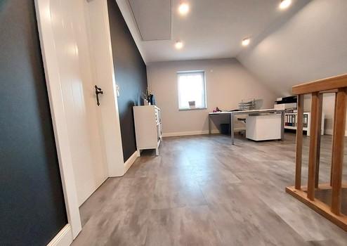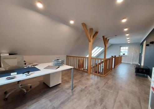 In der oberen Etage, die man über eine Echtholztreppe aus Eiche erreicht, befindet sich eine schöne Galeriefläche, mit Blick runter in das Wohnzimmer und diese Fläche wird derzeit als Büro genutzt.