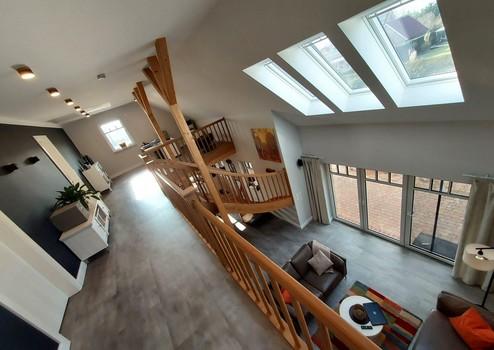 Das Echtholz der Galerie bringt viel Wärme in den Raum.