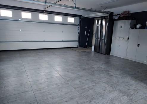 Hier wäre auch möglich, die kleine Terrasse als eigenständigen Grillplatz zu nutzen, da man ebenfalls einen schnellen Zugang zur großen Doppelgarage mit eigenem Duschbad hat.